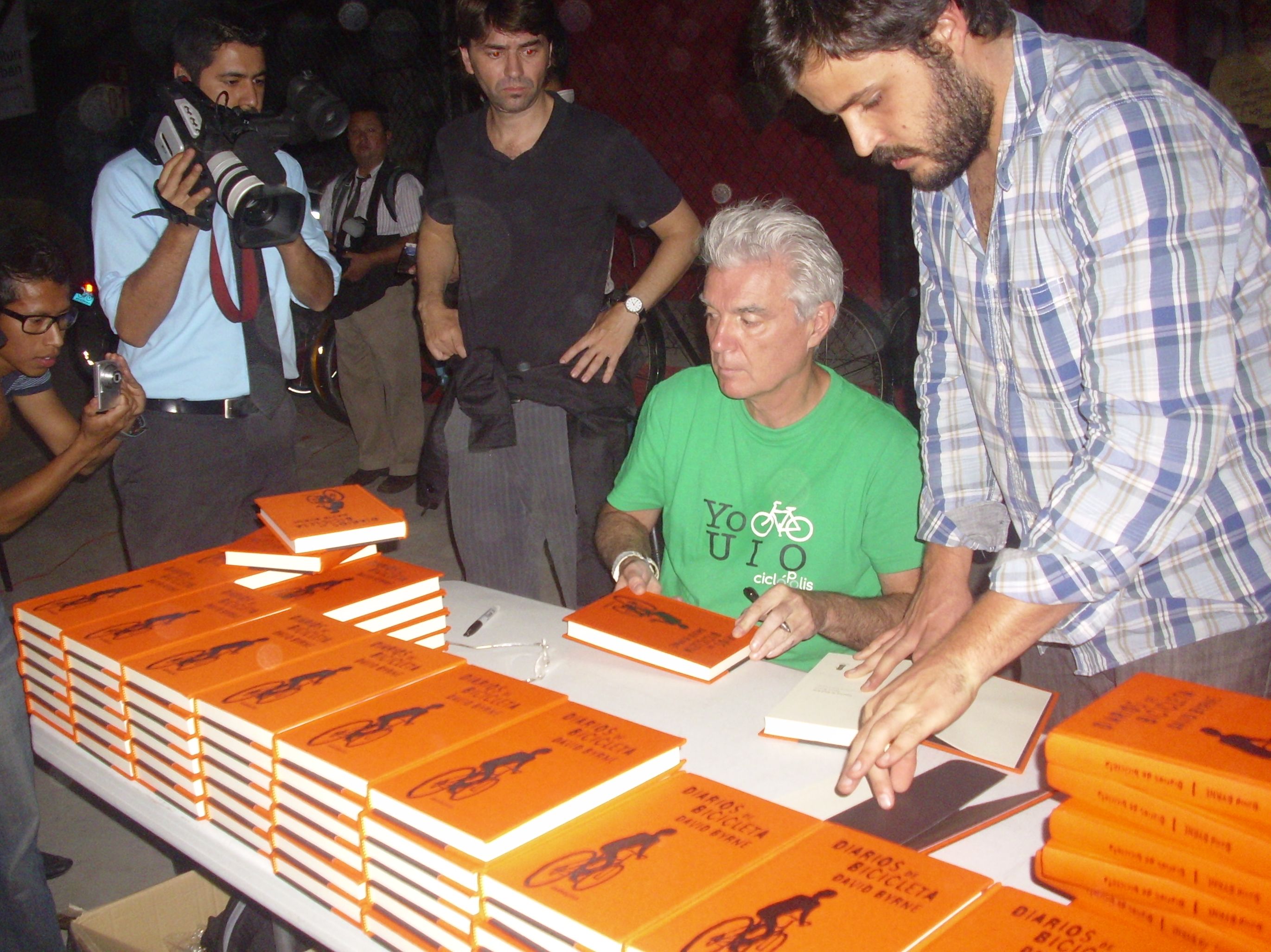 The city is a notoriously dangerous environment for cyclists. As if to cruelly emphasize the problem, a young cyclist was hit by a bus and killed instantly while Byrne was inside signing autographs.