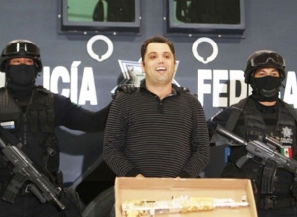Pozos was detained in Metepec in the State of Mexico on Tuesday, in possession of a gold-plated AK-47. He smiled maniacally and gave two thumbs up when presented to the media the following day.