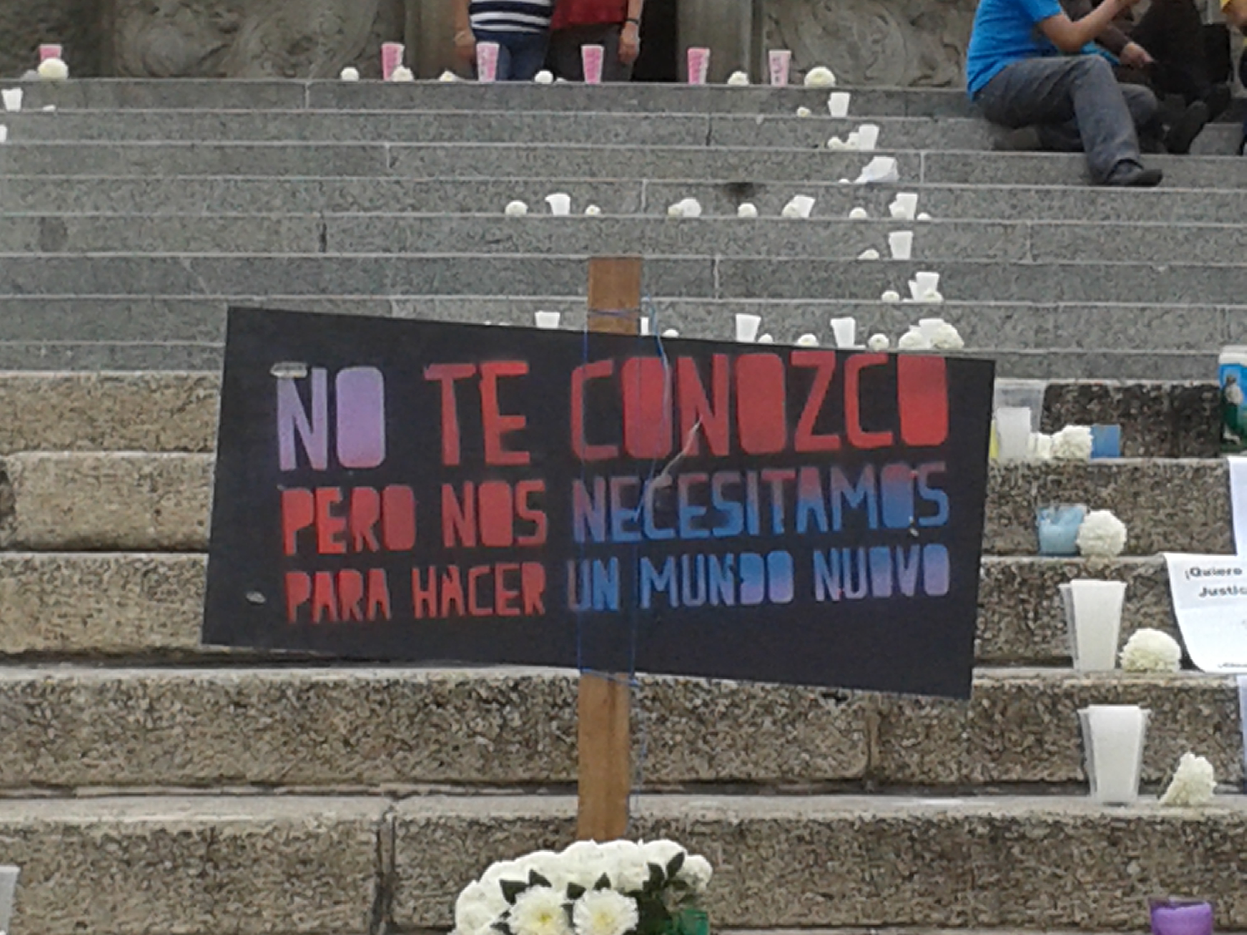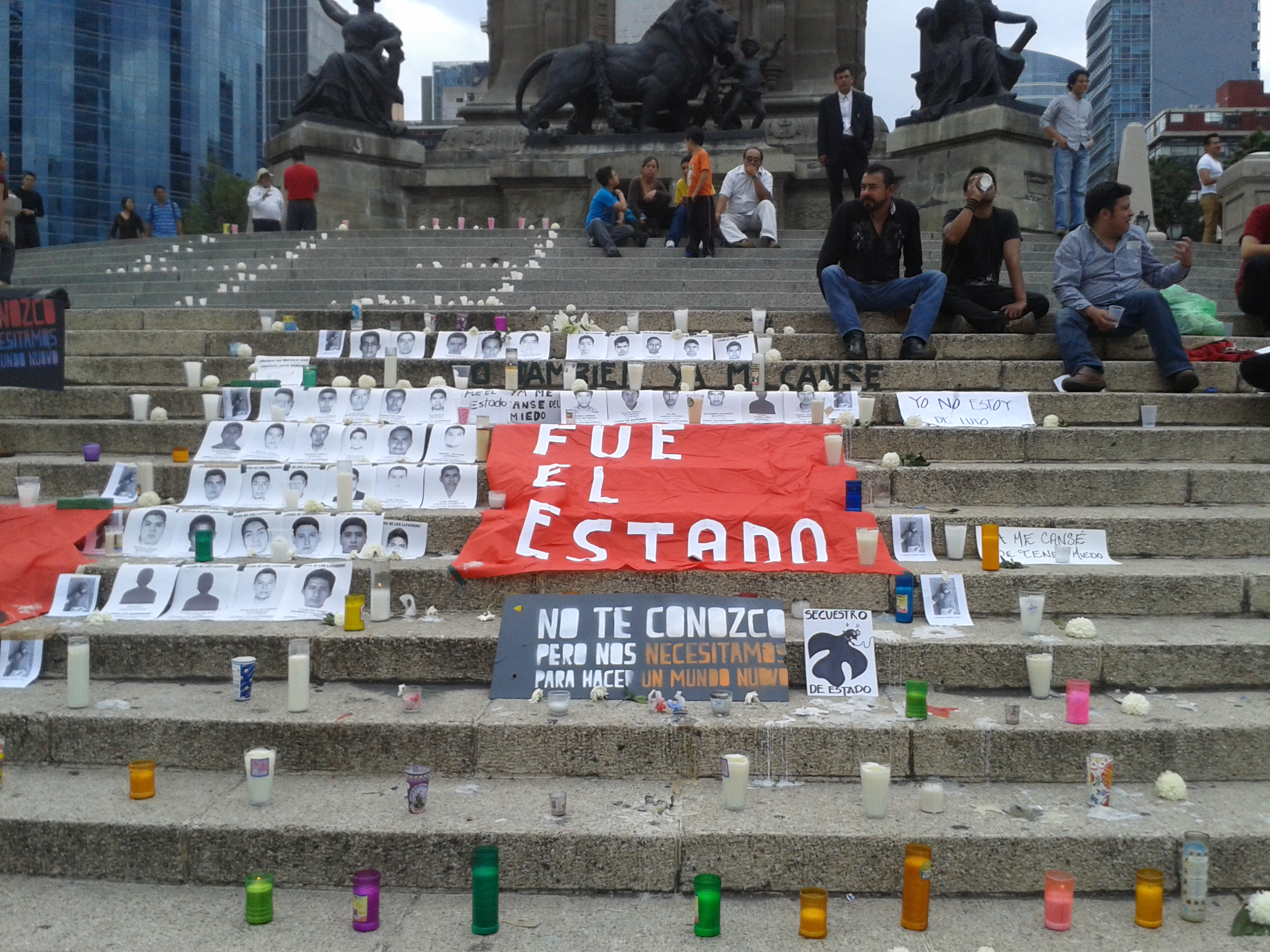 The Angel de Independencia, one of the capital’s most famous landmarks, on the iconic Paseo de la Reforma, was filled with candles, photos of the missing students and messages expressing solidarity with the victims or anger at the government.