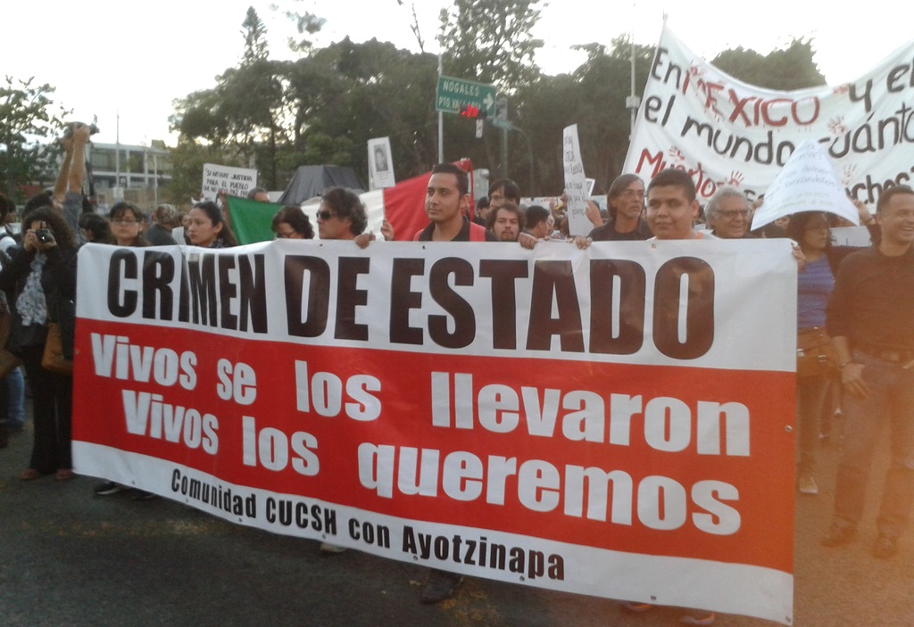 Students from the University of Guadalajara demand the safe return of their counterparts from Ayotzinapa.