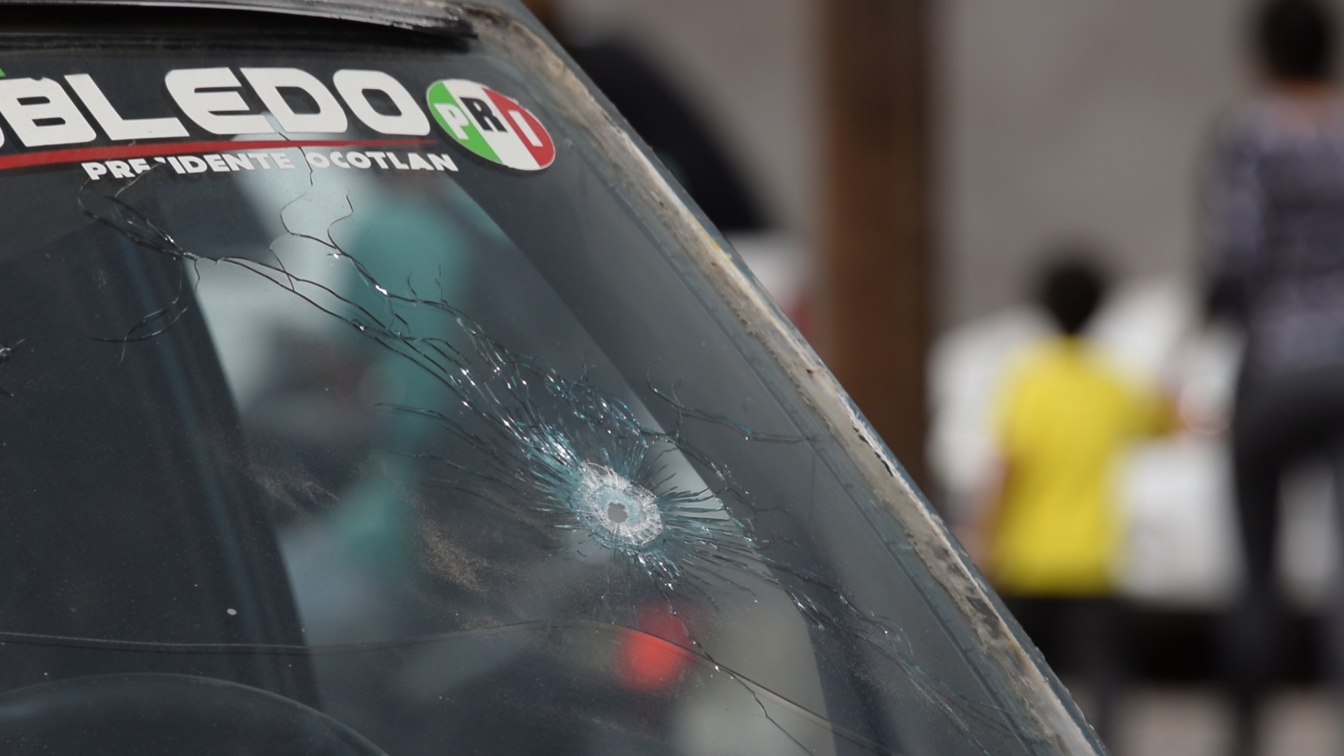 A bullet punctured the windshield of a vehicle in the community of Ocotlán, Jalisco, after a March 19 shootout that left 11 people dead. (Photo by Victor Hugo Ornelas/VICE News)