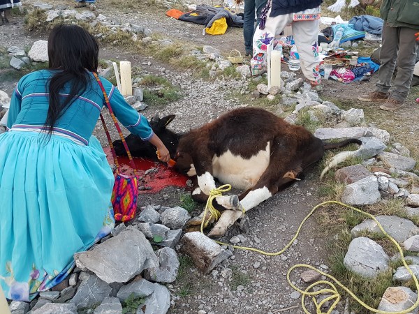 As dawn broke on a sacred mountaintop in northern Mexico, a group of indigenous pilgrims dragged a sacrificial calf into their stone circle and slit its throat. They then dipped candles in the warm blood still gushing from the animal’s throat and lit them, creating a circle of light.
